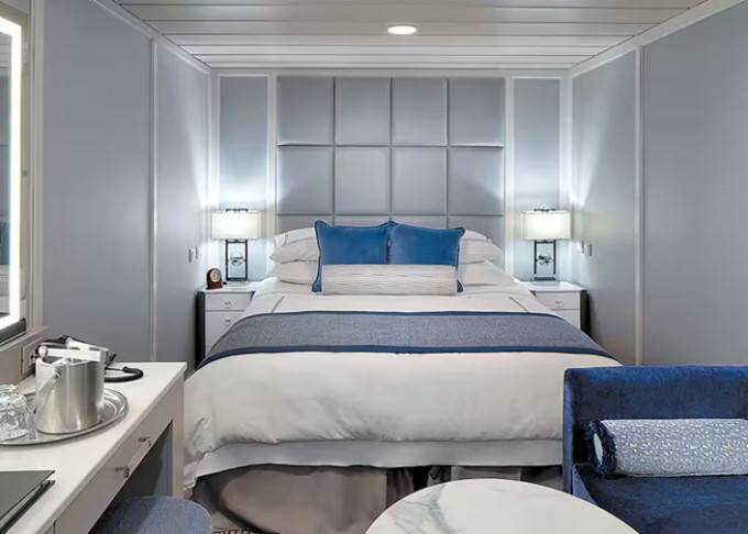 - Owner’s Suites: súkromný obed v apartmáne od 12:00 do 14:00 (voliteľné) v deň nalodenia