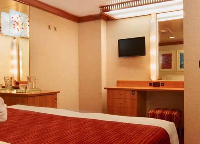 • Ubytovanie v kajute vybranej kategórie. Základné vybavenie: kúpeľňa s WC a sprchovacím kútom, 2 lôžka spojiteľné do manželskej postele, skrine, nočné stolíky, toaletný stolík a stolička, nastaviteľná klimatizácia, interaktívna satelitná TV s plochou obrazovkou, trezor, sušič na vlasy, uteráky a posteľné prádlo, Wi-Fi pripojenie (za poplatok), 24/7 kajutová služba (za poplatok).