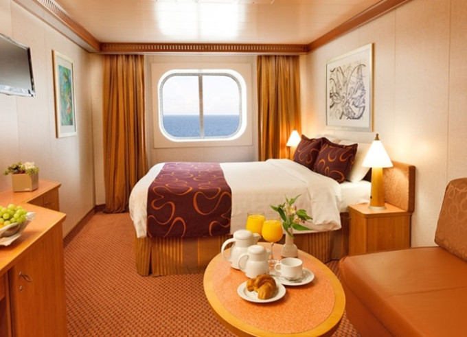 • Ubytovanie v kajute vybranej kategórie. Základné vybavenie: kúpeľňa s WC a sprchovacím kútom, 2 lôžka spojiteľné do manželskej postele, skrine, nočné stolíky, toaletný stolík a stolička, nastaviteľná klimatizácia, interaktívna satelitná TV s plochou obrazovkou, trezor, sušič na vlasy, uteráky a posteľné prádlo, Wi-Fi pripojenie (za poplatok), 24/7 kajutová služba (za poplatok).