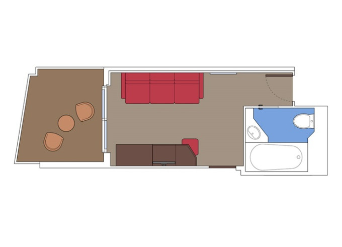 Balkónová kajuta: 19 - 22 m², kajuta s manželskou posteľou (na požiadanie 2 oddelené postele) a rozkladacia pohovka. Klimatizácia, kúpeľňa so sprchou alebo vaňou a WC, toaletný stolík, priestranná skriňa, interaktívna TV, telefón, trezor, sušič vlasov, virtuálna asistentka ZOE. Balkóny so stolíkom a stoličkami. Niektoré kajuty majú obmedzený výhľad.