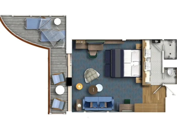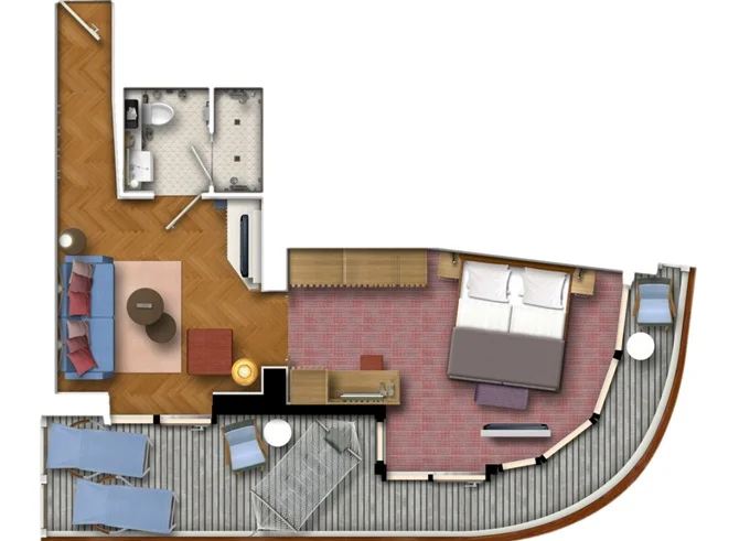 | JBAO - Junior Suite s balkónom 26 m² + balkón 7 m² so stolom. 10,11. paluba. Max 4 osoby. Výhody Junior Suite. | 4 998 € 4 998 € za osobu |