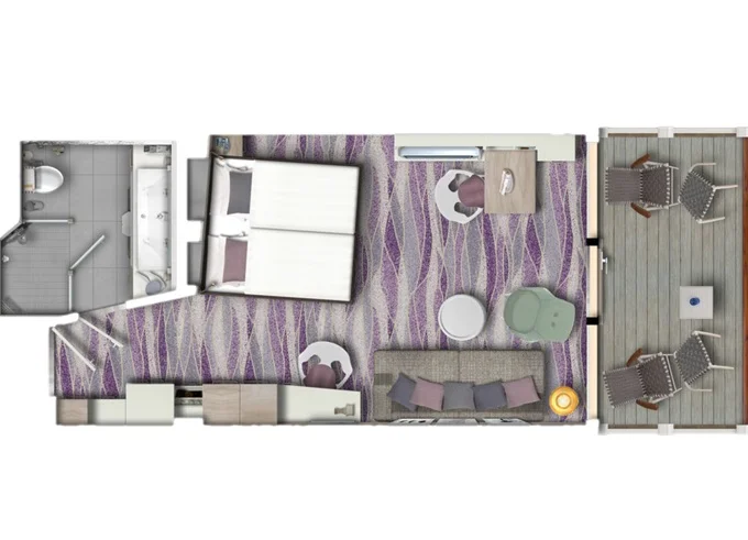 | JBAO - Junior Suite s balkónom 26 m² + balkón 7 m² so stolom. 10,11. paluba. Max 4 osoby. Výhody Junior Suite. | 4 998 € 2 499 € za osobu |