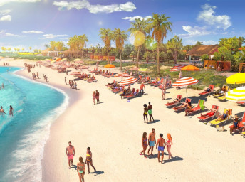 - Floating AquaBanas (12 kabín na prenájom) poskytujú osem miest na sedenie, pevný stôl, protišmykové povrchy a priamy prístup do Starfish Lagoon. Chatky sú zoskupené okolo polostrova s vyhradeným nápojovým barom